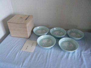 井上萬二 青白磁公孫樹文皿やその他の作家物の青白磁や陶器等の買取ご希望の場合は