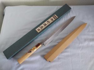 北海道千歳市のお客様より堺上作 刺身包丁/和包丁 青鋼 別誂の